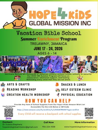 Hurricane Melissa left thousands of Jamaican children without homes, schools, or security. Our 2026 VBS Summer Program will focus on reassurance, emotional support, and healing. Reminding every child that they are not alone.